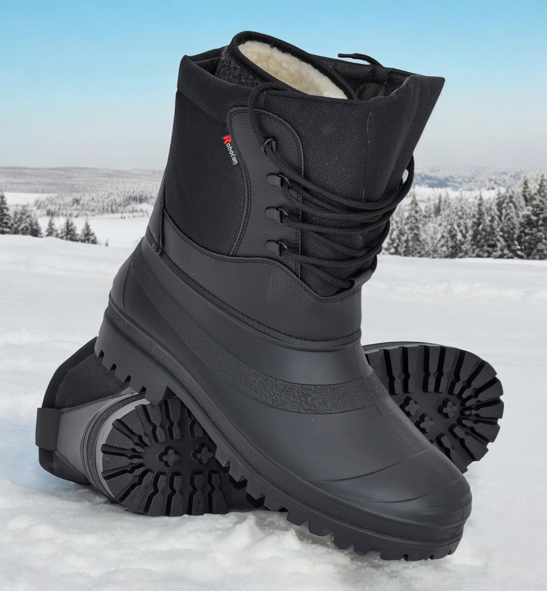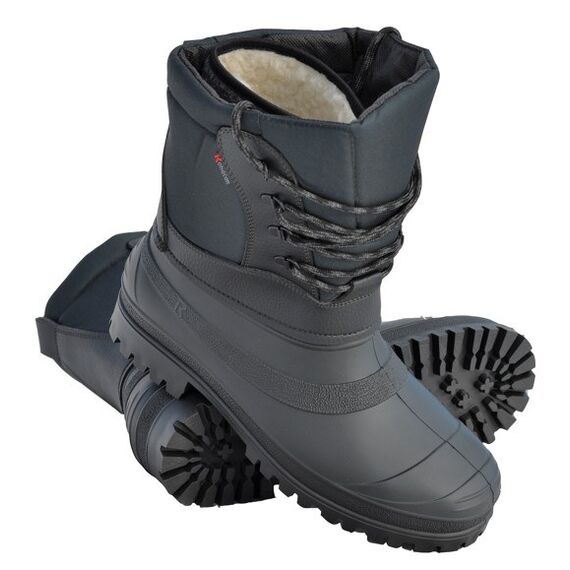 Nepremokavé zimné čižmy s vyberateľnou vložkou . Mrazuvzdorná termo-kačuková podrážka odolná vode až do výšky 10cm. Zvršok vode odolný polyester s membránou , eko-koža s mikrovláknom . Protišmyková podrážka s hrubým dezénom vhodným do snehu ale aj blata. Pohodlné šnurovanie. Hrubá vložka s ovčej vlny pre teplo a pohodlie aj v extrémnej zime. Obuv vysoká cca 28cm.